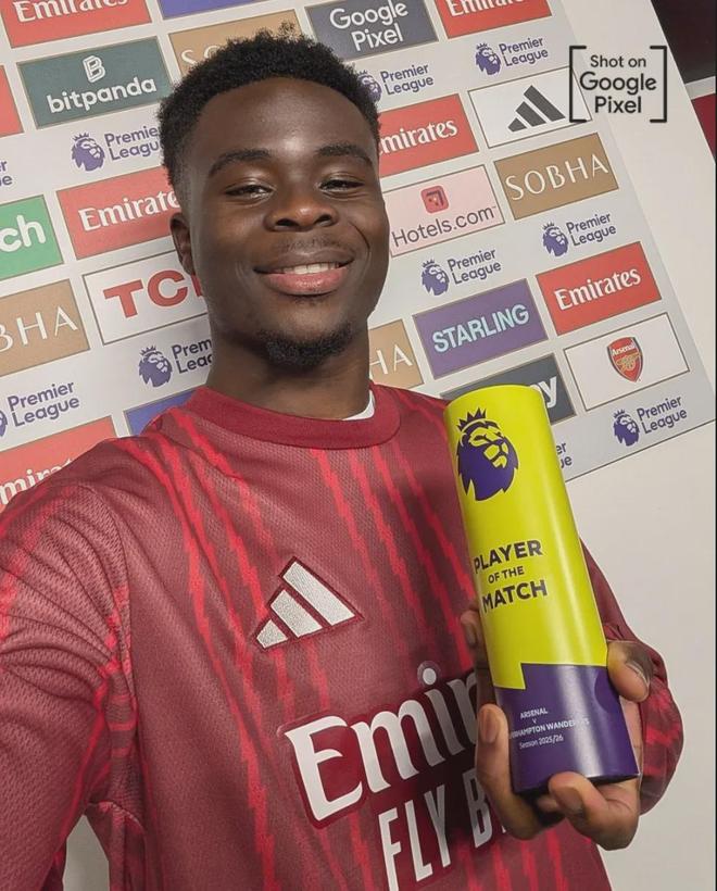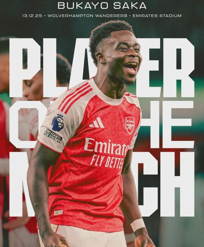 官方:萨卡被阿森纳票选为了全场比赛最佳球员。官方评选的最佳也是萨卡!