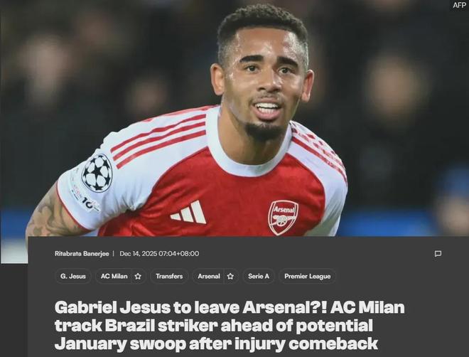 据悉,热苏斯在阿森纳的税前年薪高达1600万欧元,这远远高于米兰的承担能力,红黑军团唯一的利好是,热苏斯希望在世界杯到来之前多踢比赛。